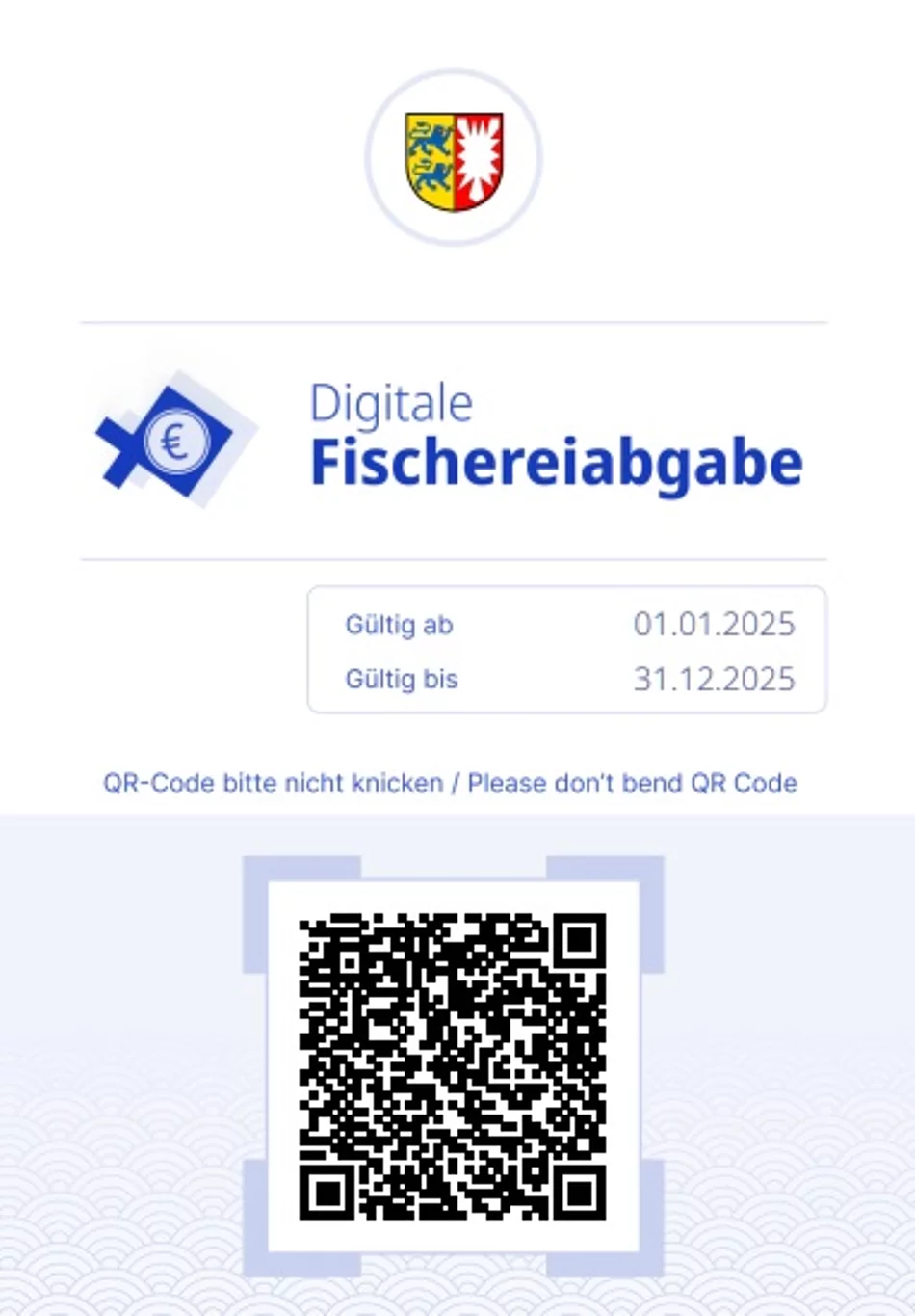 Über den Onlinedienst beträgt die Höhe der Fischereiabgabe 20,00 EUR pro Jahr.