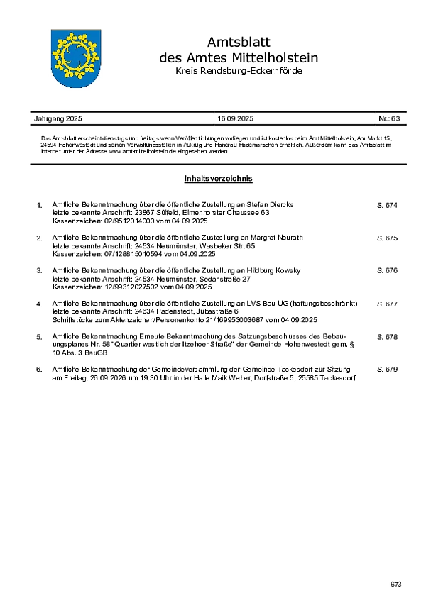 Amtsblatt des Amtes Mittelholstein Nr. 63/2025