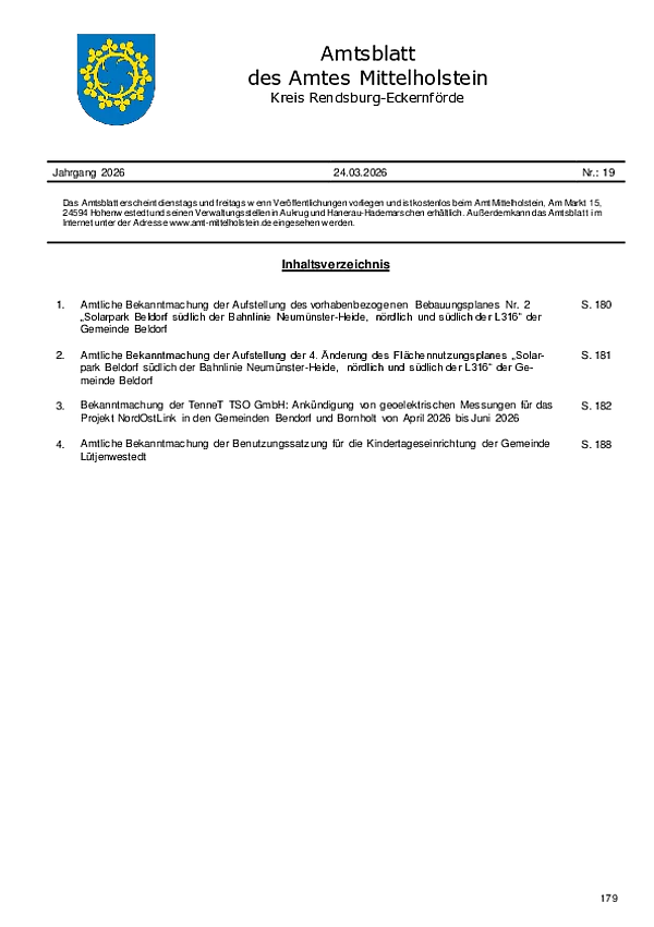 Amtsblatt des Amtes Mittelholstein Nr. 19/2026
