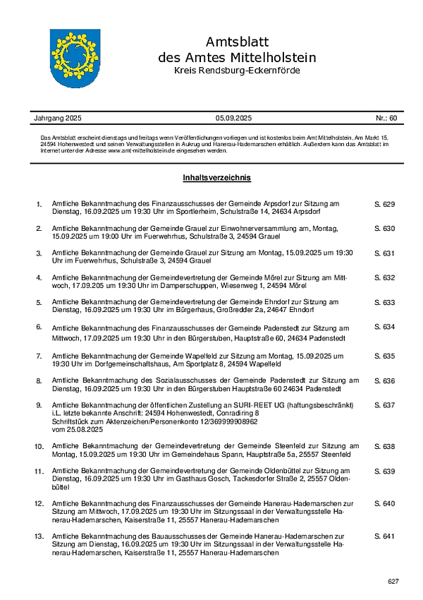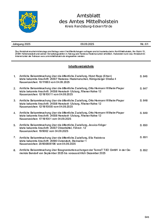 Amtsblatt des Amtes Mittelholstein Nr. 61/2025