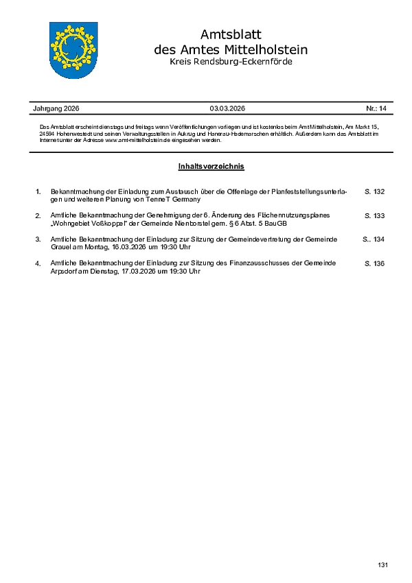 Amtsblatt des Amtes Mittelholstein Nr. 14/2026
