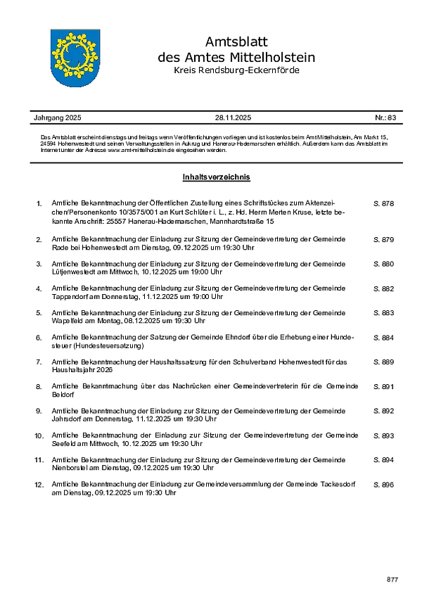 Amtsblatt des Amtes Mittelholstein Nr. 83/2025