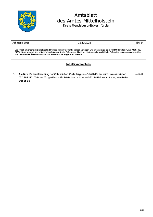 Amtsblatt des Amtes Mittelholstein Nr. 84/2025